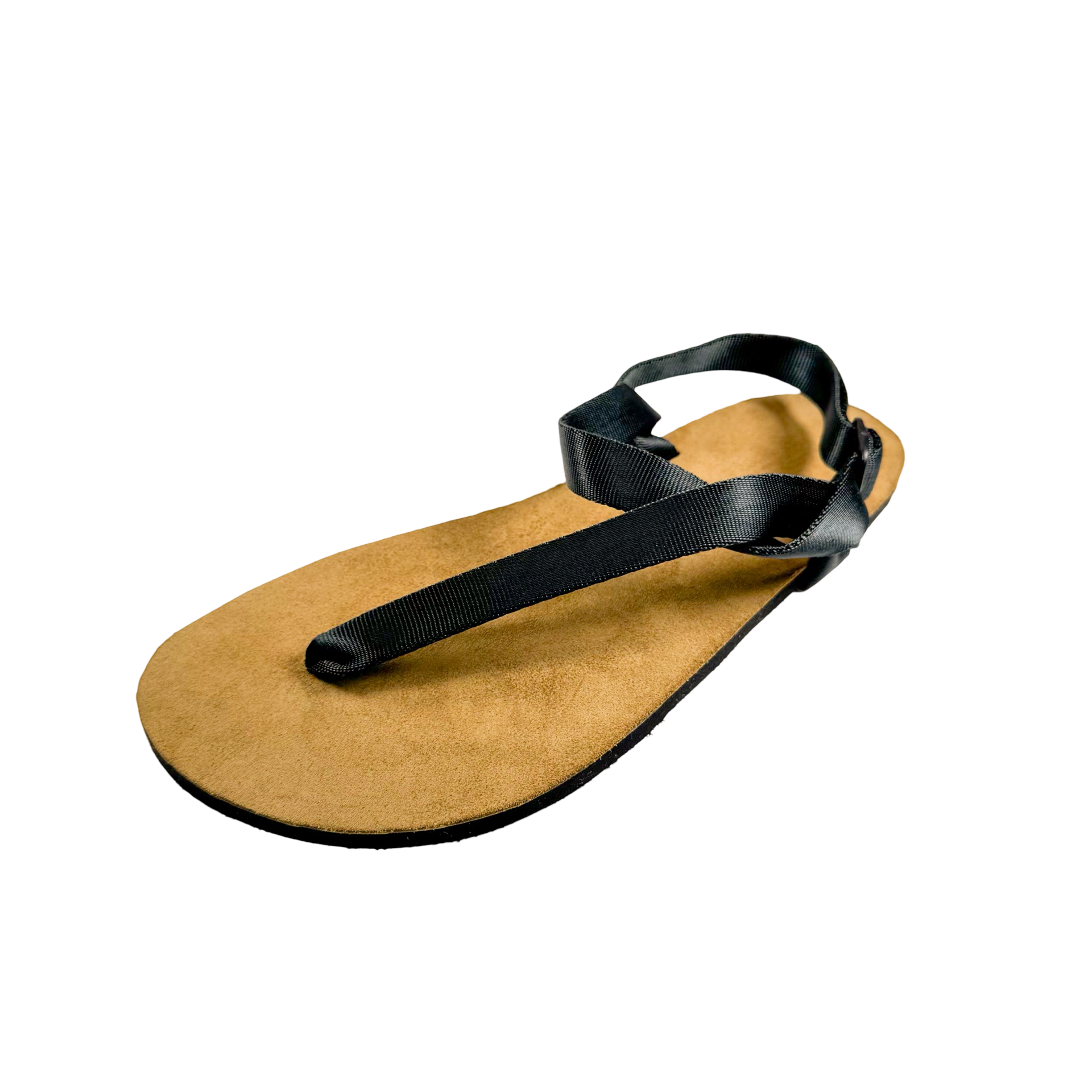 Footwear with raised or cushioned heels can put your spine out of alignment causing unnatural heel strike. Our sandals are completely flat (zero drop) and thin. This helps promote neutral posture and natural movement. The thin sole lets you feel the earth more, experience greater sensory feedback and be more grounded!