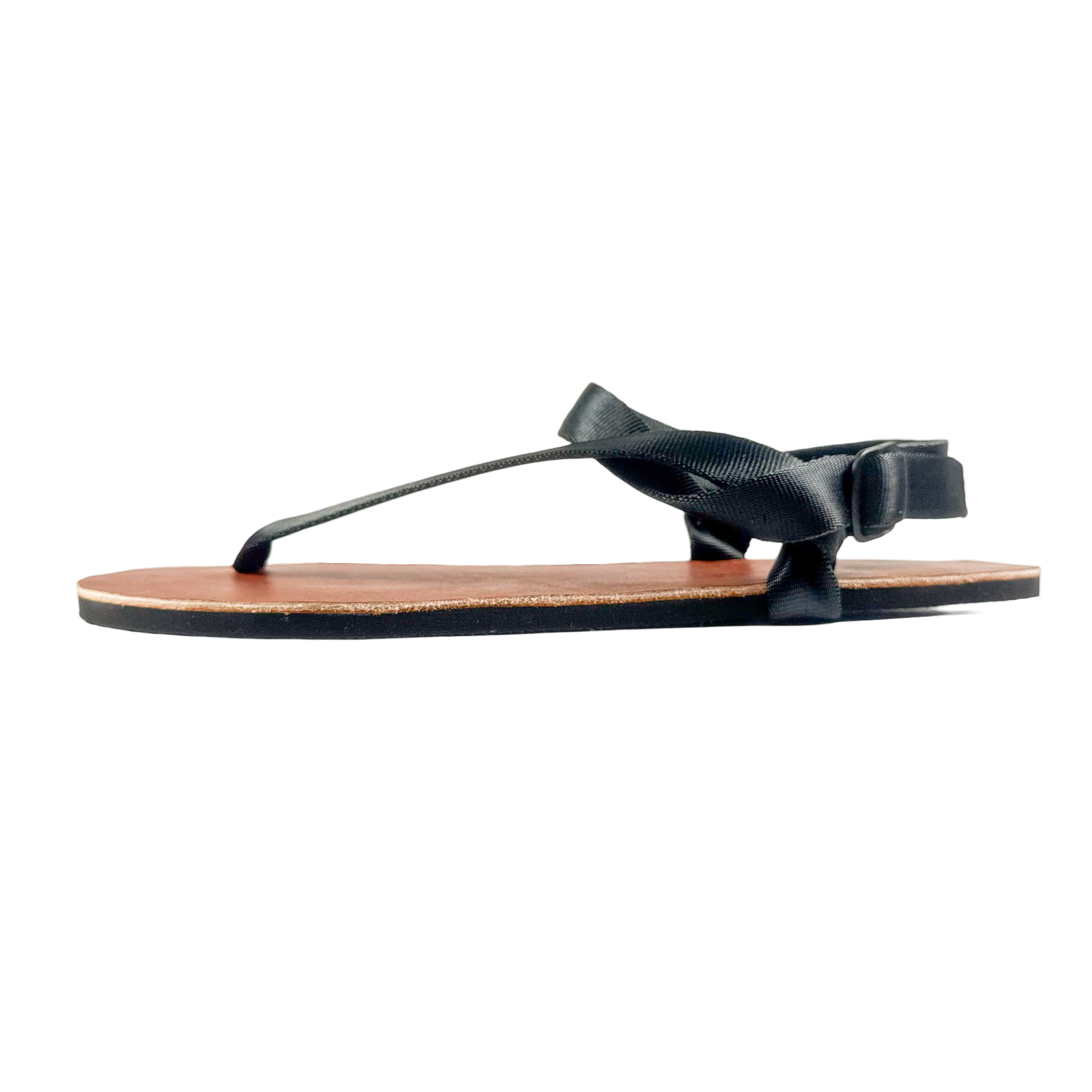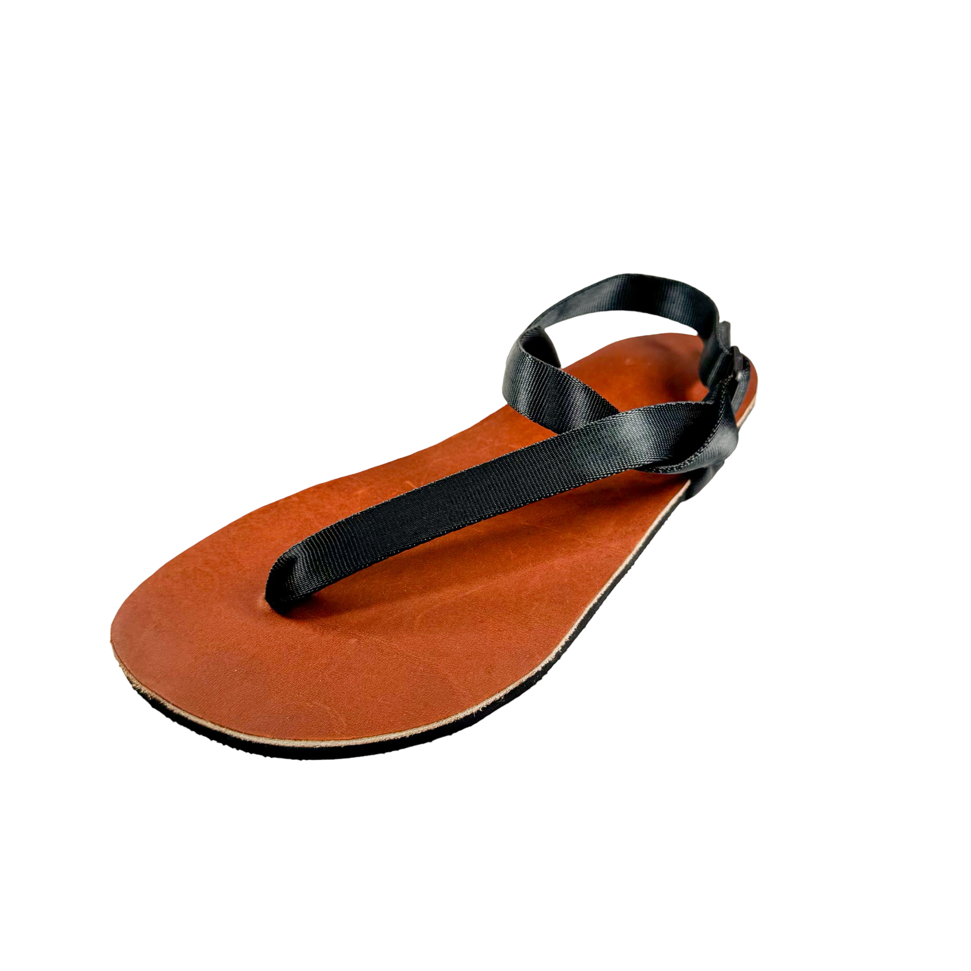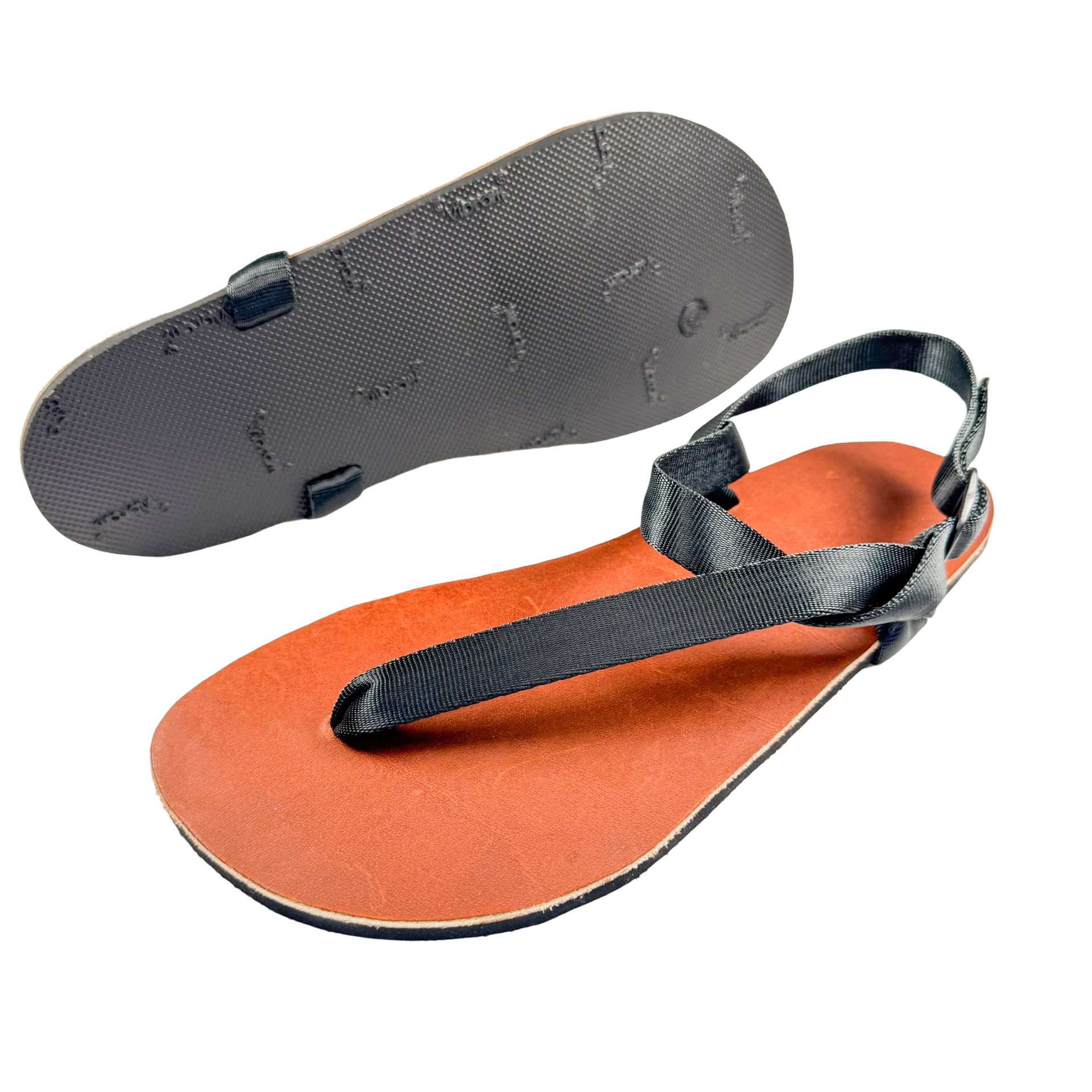 Footwear with raised or cushioned heels can put your spine out of alignment causing unnatural heel strike. Our sandals are completely flat (zero drop) and thin. This helps promote neutral posture and natural movement. The thin sole lets you feel the earth more, experience greater sensory feedback and be more grounded!