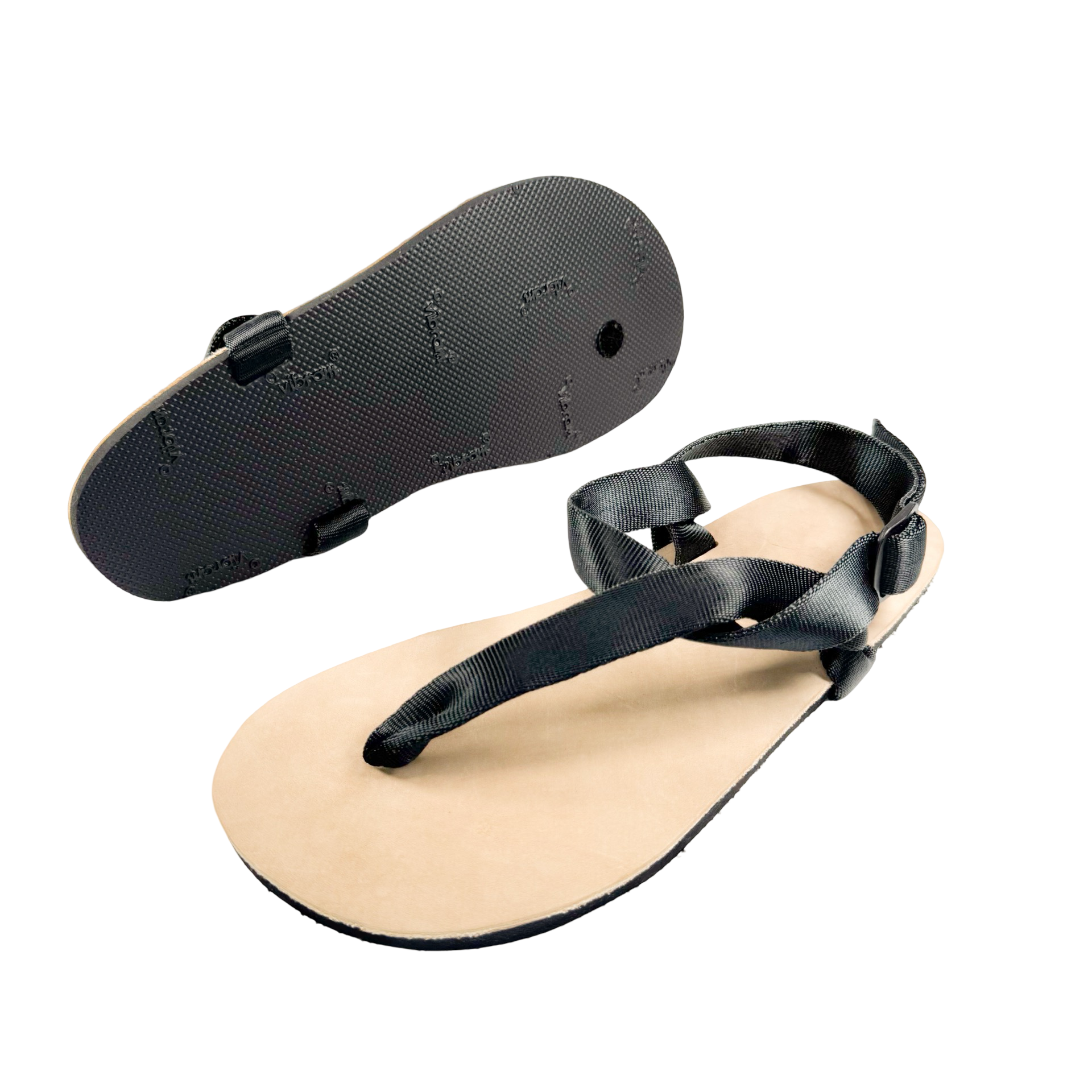 Footwear with raised or cushioned heels can put your spine out of alignment causing unnatural heel strike. Our sandals are completely flat (zero drop) and thin. This helps promote neutral posture and natural movement. The thin sole lets you feel the earth more, experience greater sensory feedback and be more grounded!